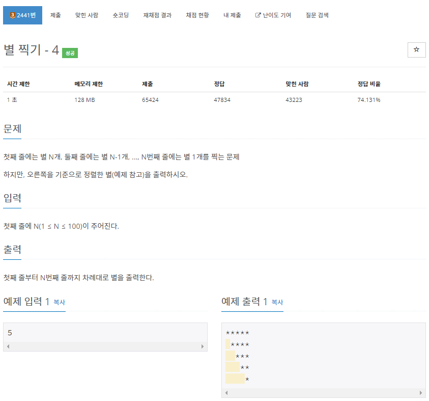 BOJ (C/C++) 2441번: 별 찍기 - 4 본문