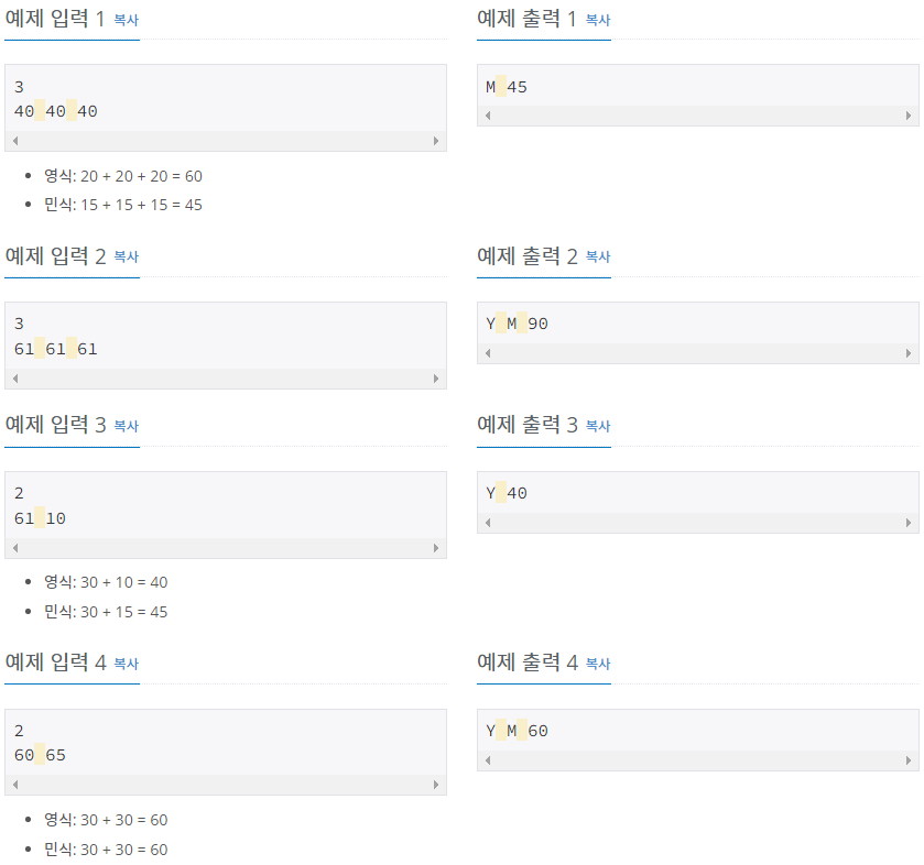 else if (Y == M) printf("Y M %d", Y);