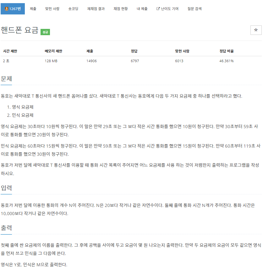 1267번: 핸드폰 요금