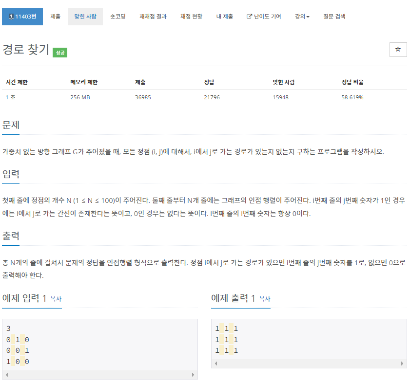 https://www.acmicpc.net/problem/11403