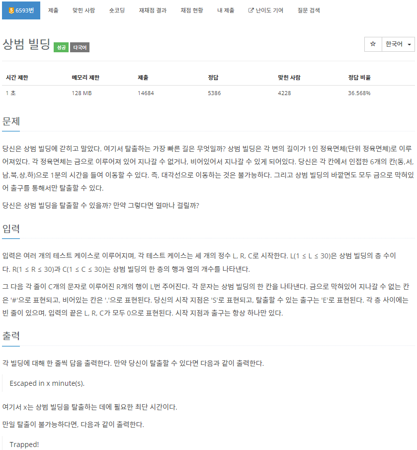 6593번: 상범 빌딩