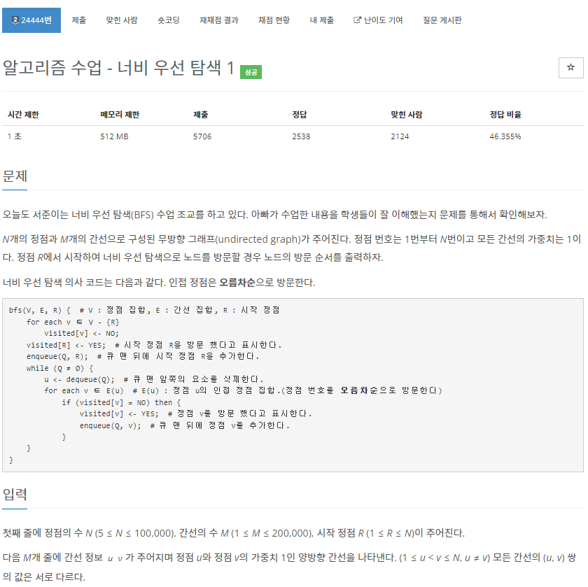 24444번: 알고리즘 수업 - 너비 우선 탐색 1