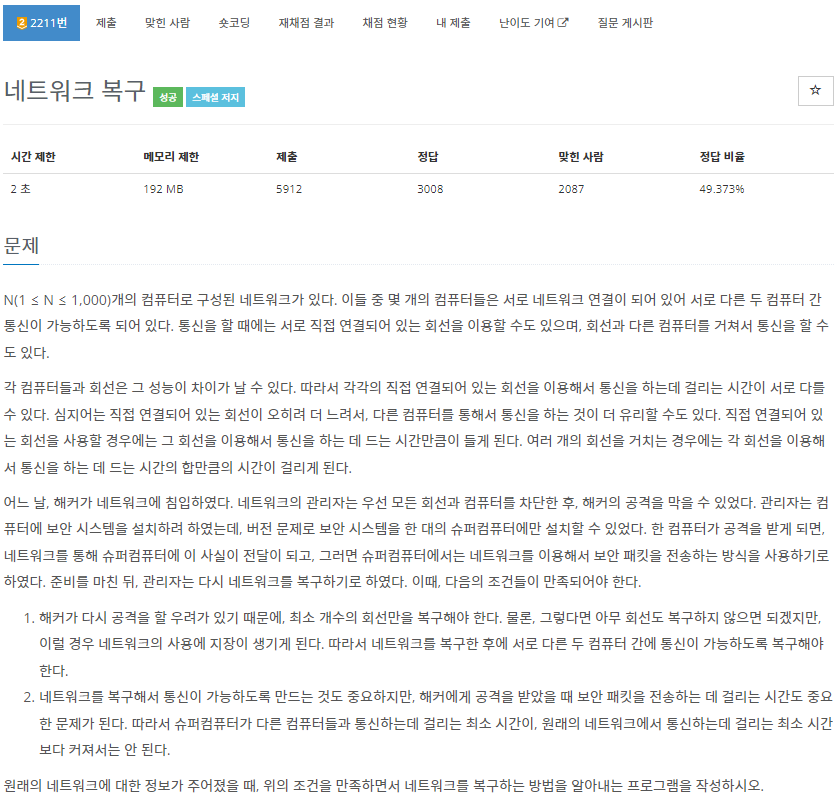 2211번: 네트워크 복구