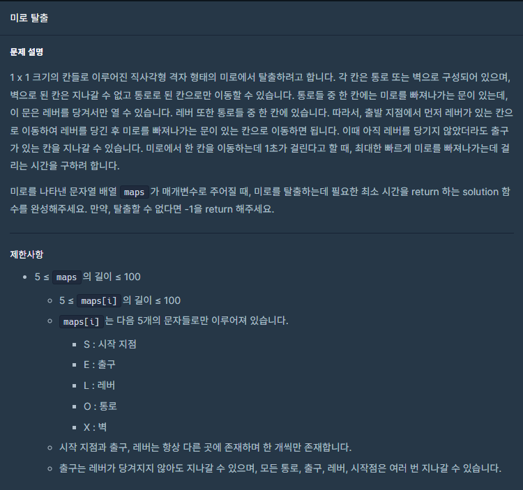 프로그래머스 (C/C++) 159993 : 미로 탈출 본문