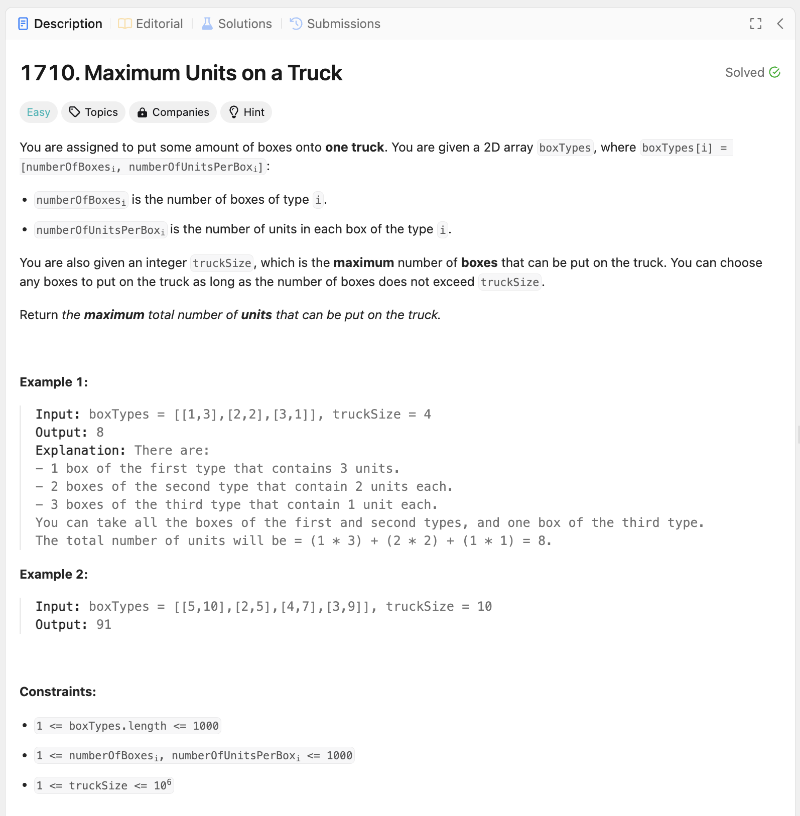 https://leetcode.com/problems/maximum-units-on-a-truck/description/