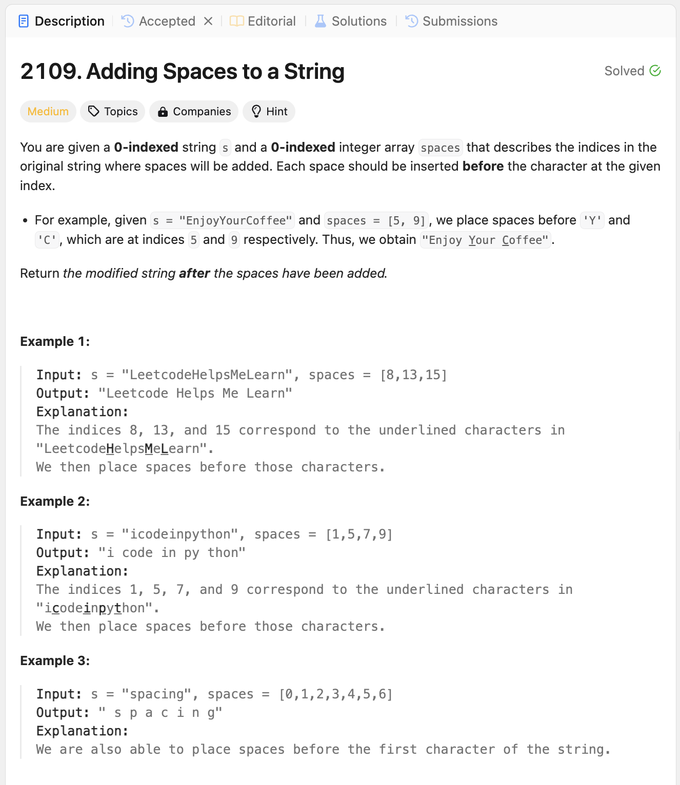 https://leetcode.com/problems/adding-spaces-to-a-string/description