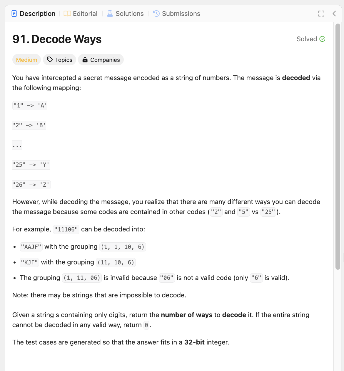 https://leetcode.com/problems/decode-ways/description/