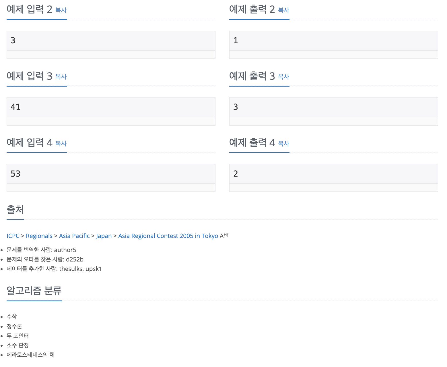 이 때 end 인덱스로 끝까지 탐색했을 때 부분 합 > 주어진 수라면 start 인덱스를 증가하며 주어진 수가 소수일 때를 확인했다.