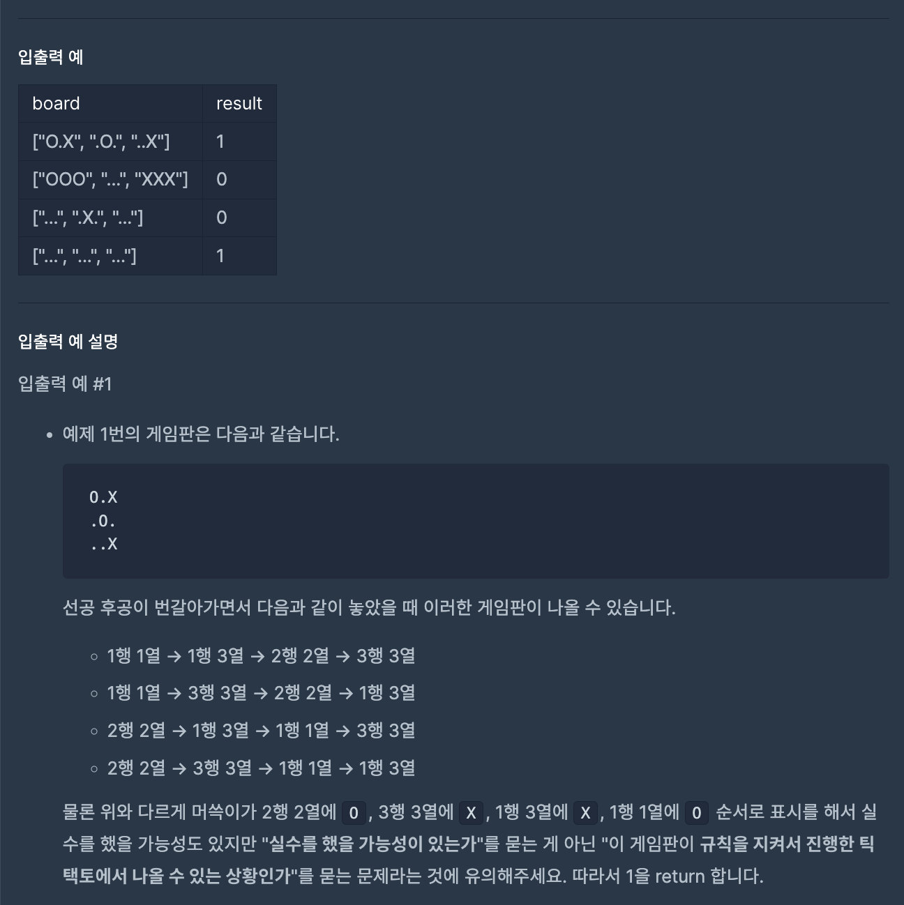 프로그래머스 (Java) 160585 : 혼자서 하는 틱택토 본문