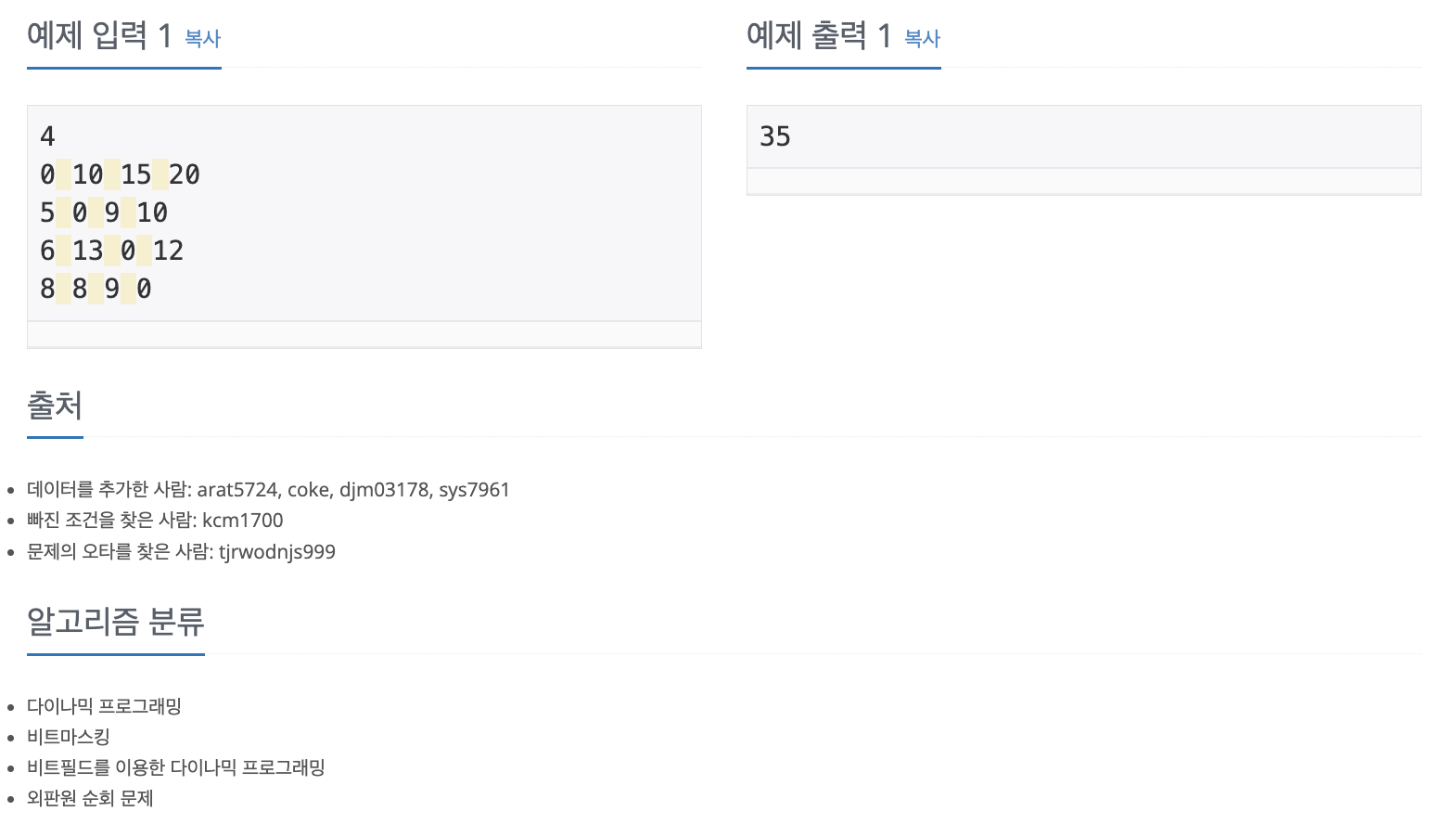 알고리즘을 보니 비트마스킹과 DP가 있어 바로 풀이를 봤다.