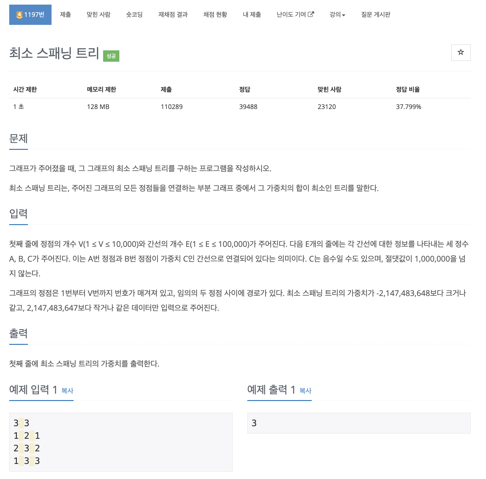 BOJ (Java) 1197번: 최소 스패닝 트리 본문
