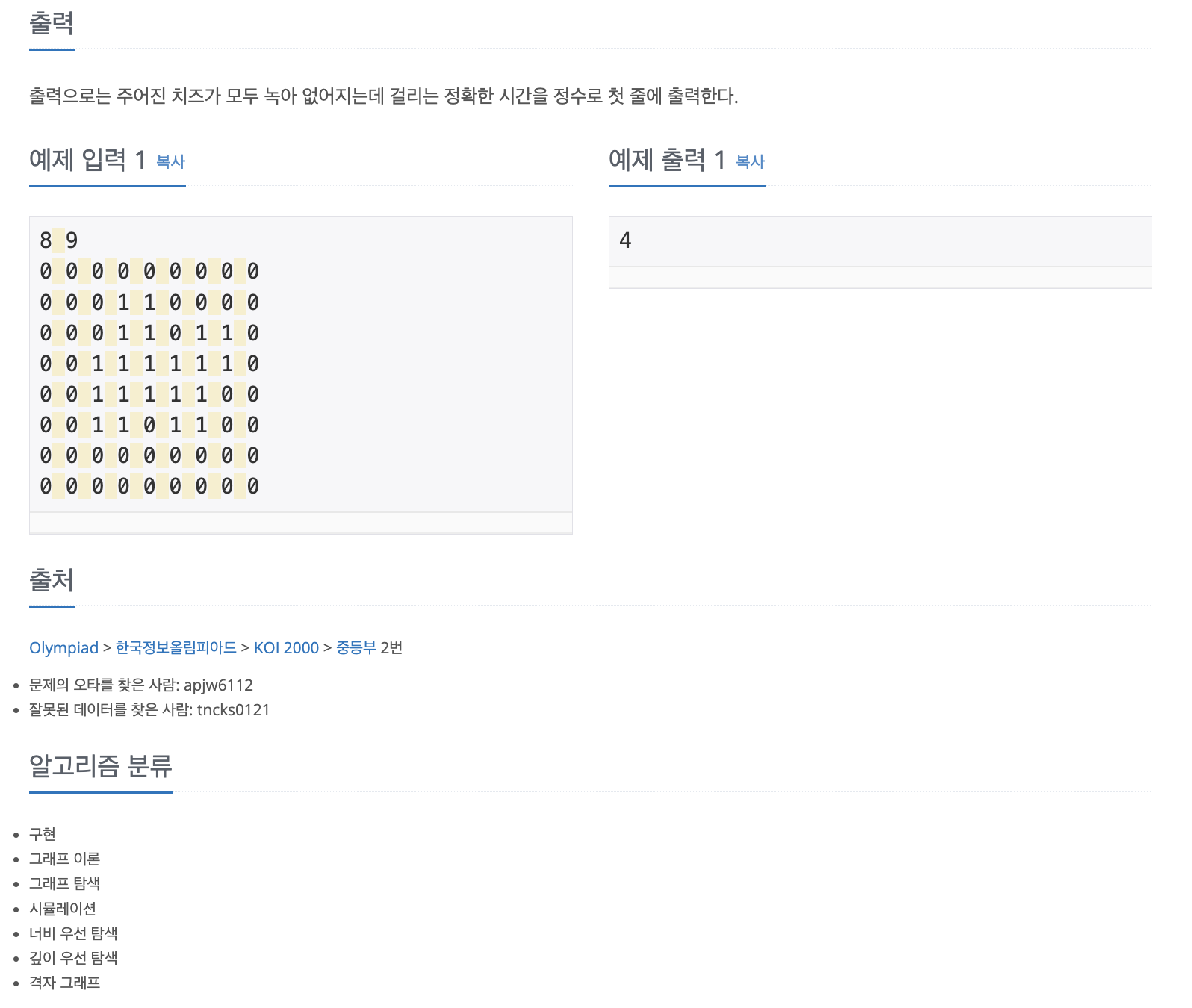 탐색 중에 치즈를 녹인다면 다른 곳을 탐색할 때 영향을 미치므로 이를 저장해두었다가 마지막에 한 번에 바꿔줬다.