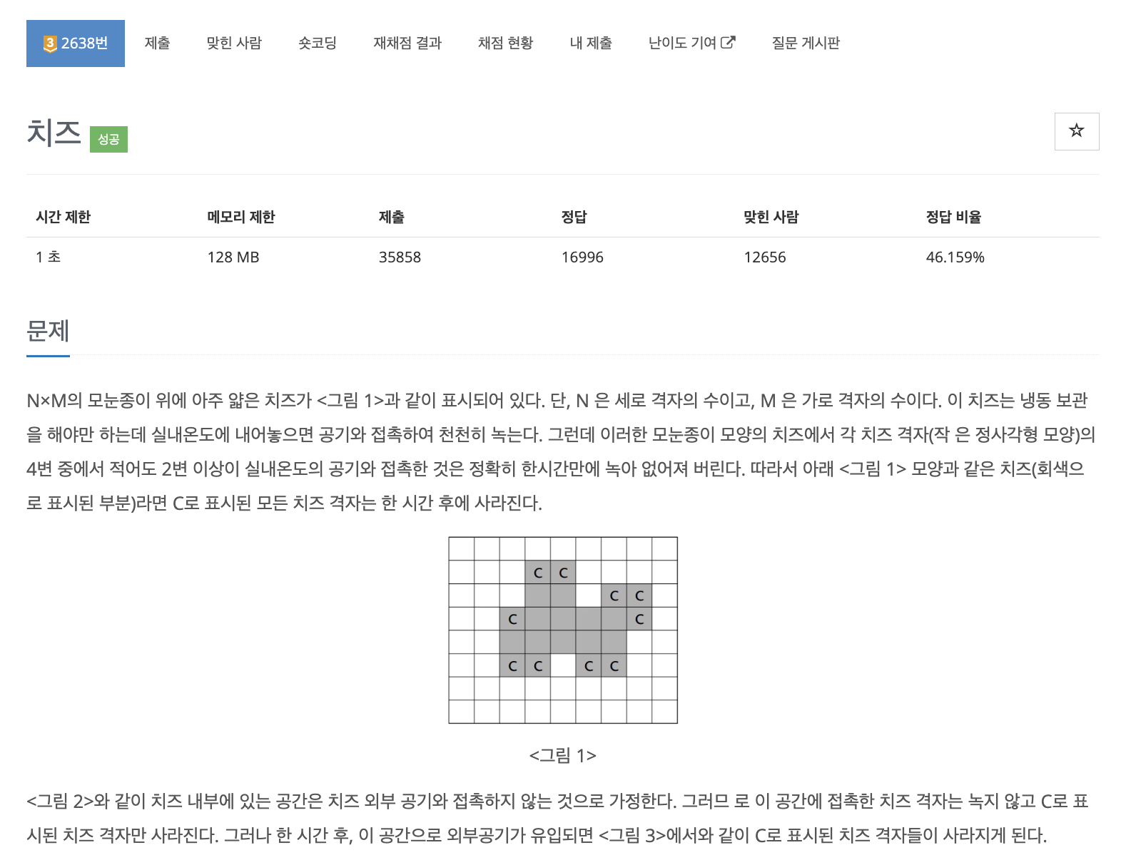 현재 셀이 공기일 때 주위에 치즈가 있는지 확인, 있다면 공기와 맞닿은 횟수를 저장해둔다.
