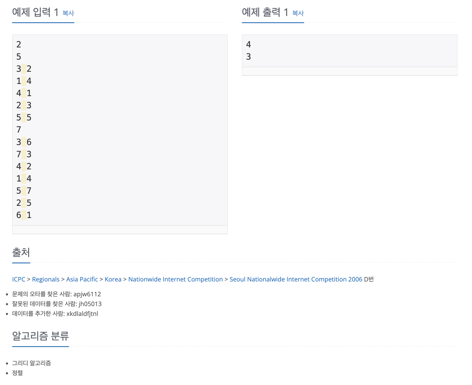 두 개의 조건을 비교해야 하므로, 먼저 서류 심사 순으로 순위를 매긴다.