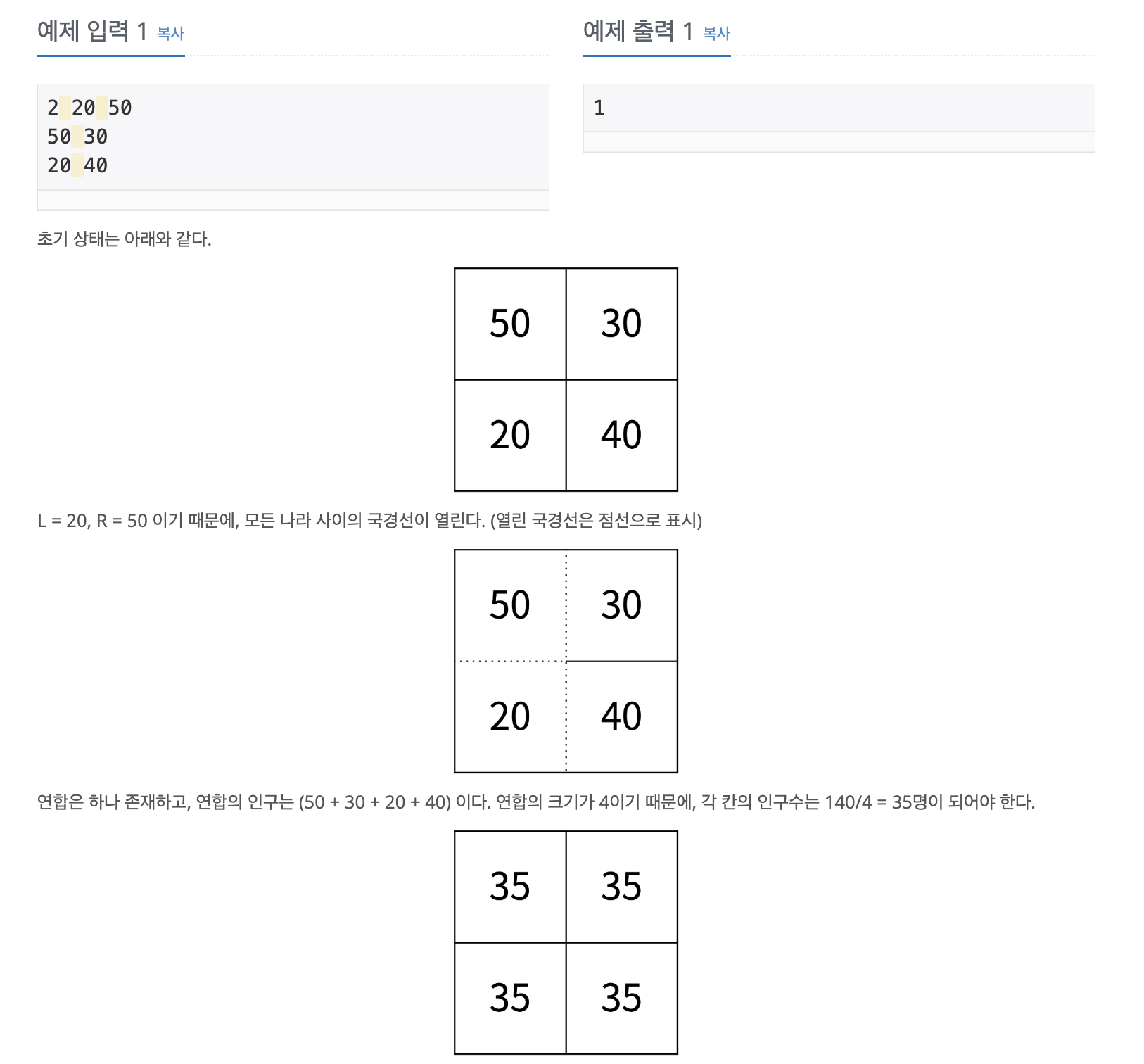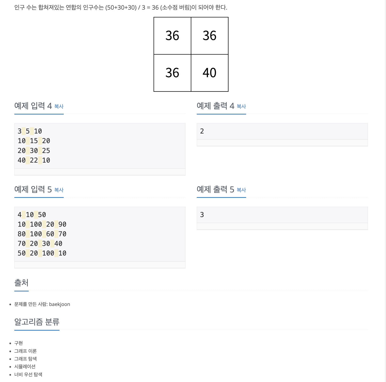 이를 토대로 연합 별 인구 수(sum / cnt)를 구한 후 맵(groupNum, sum/cnt) 에 저장하였고, 인구를 이동(movePeople)시켰다.